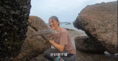 大浪把魚沖上岸,漁妹「魚」多到拿不動