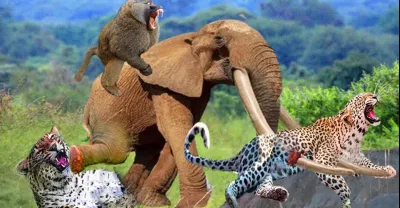 Shocking Video! Giant Elephant Rushed To Attack And Trample Leopard To Save Poor Baboon