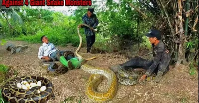 A group of brave hunters surrounded the nest of 4 giant snakes | King of the Reptiles