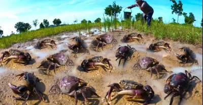 哇驚人的釣魚!一個漁夫在雨後用最好的手抓了很多田蟹,頂級釣魚