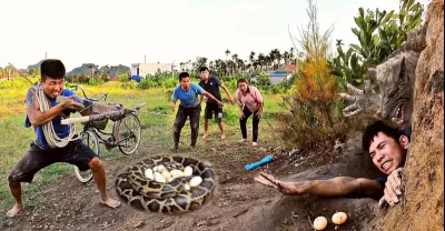 驚恐萬分的巨蟒怪物在洞穴裡產卵,抓住了年輕人……