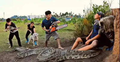 勇敢的 18 歲女孩追逐 3 條攻擊鴨子的巨型眼鏡蛇