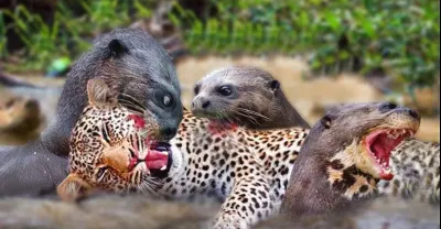 瘋狂的水獺攻擊美洲豹,因為美洲豹膽敢攻擊它的同伴動物世界!