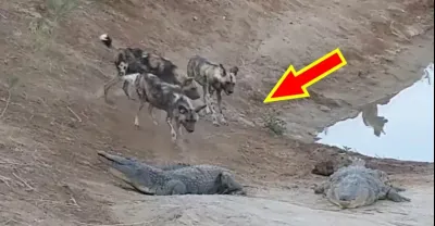 野狗大戰鱷魚,卻發現沒肛可掏!沒想到下一秒居然使出這招,鱷魚措手不及!