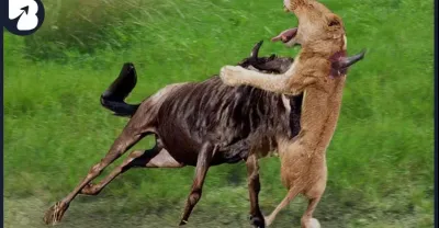 獅子倒下,一頭角馬擊倒獅子