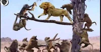 Tree Fight ! Angry Lion Destroys Pack Of Evil Baboons To Rescue Lion Cub