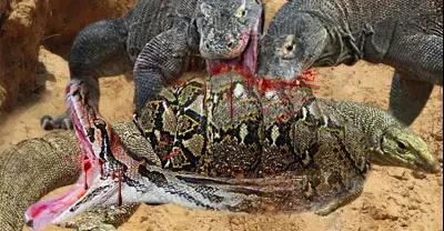 Komodo vs Python Survival Battle - Komodo Dragon Cruelly Eat Python To Revenge Their Comrades