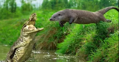 Incrível .. lontras com raiva vs. crocodilos / mundo animal incrivelmente gigante