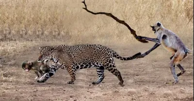 豹捕獵猴寶寶,猴媽媽沒能防