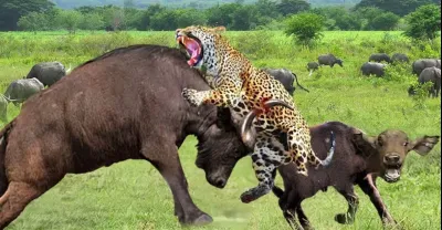母親的憤怒!兇猛的水牛媽媽為了保護她的小腿,瘋狂地摧毀豹子
