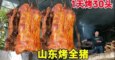 山東硬核烤全豬,旺季一天賣60頭,2.8深坑800度,明火1小時烤熟,強! #菊城小微#正宗土豬肉 #燒豬 #農村美食