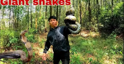 成功捕獲了一對統治叢林的眼鏡王蛇