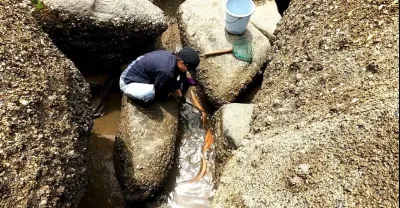 皮皮一腳踩進大海溝,發現深處盤了條「大蟒」,扯出來嚇一大跳
