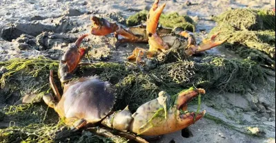 乾水後漁民捕捉怪物魚和許多蝸牛