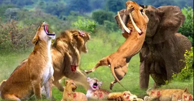 獅子大屠殺!好鬥的大象將獅子的家人折磨為他們的小牛報仇