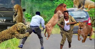 可怕的時刻!野生動物包圍並攻擊遊客侵占他們的棲息地
