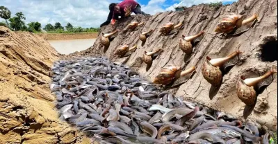 After Dry Water a Fishermen Catching Monster Fish & Many Snails