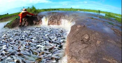 驚人的釣魚獨特!用技術手漁夫在洪水中大量捕獲鯰魚