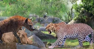 Strange Story! Hyena Appeared As A Hero Attacked Leopard To Miraculously Save Warthog From Death