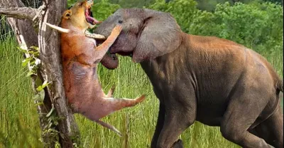 Terrible! Ferocious Elephant Fights Madly And Kills Lion To Save His Calf - Elephant vs Lion