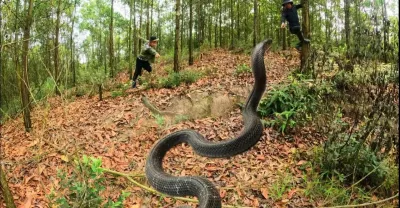在森林中發現令人毛骨悚然的咆哮,兩個年輕人對抗 6 條大眼鏡蛇