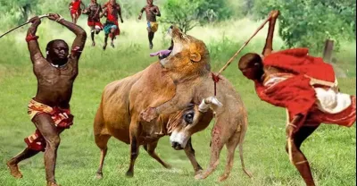 OMG! Smart And Brave Maasai Aborigines Used This Method To Attack Lion To Save Their Poor Cow