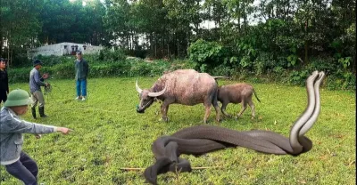 出來把水牛帶回來,兩個勇敢的男孩抓到了 5 條大眼鏡蛇