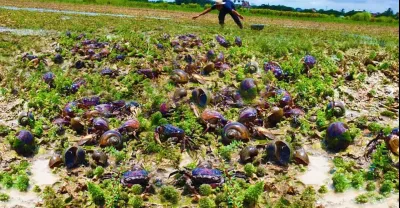 天哪,太棒了!乾水時稻田裡有很多垃圾 - 一位漁民今天發現並捕撈食物