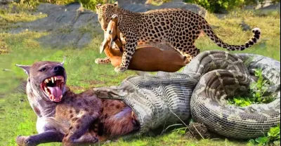 Hyena Was Swallowed By Giant Python When It Dared To Steal Prey but The Profiteer Is Leopard