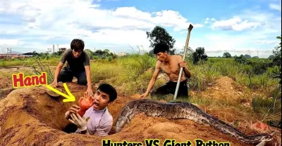 勇敢的女孩在兒子被巨蛇襲擊時尖叫著求救