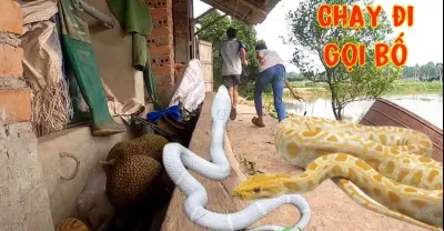 發現一對巨蟒爬進屋子嚇了一跳