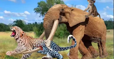 Rare Scene! Elephant Appears As A Hero To Save Baby Monkey From Leopard Killing - Leopard Vs Baboon