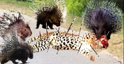 Cruel Scene! Porcupine Family Cooperate Uses Sharp Feathers Attack Leopard To Death To Save The Baby
