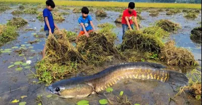 2022 年最佳釣魚視頻 |傳統男孩在河邊用塑料瓶魚鉤抓大魚