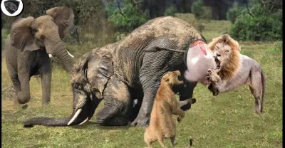 我的天啊!憤怒的大象媽媽攻擊獅子瘋狂跺腳以保護她的幼崽 - 當大象攻擊時