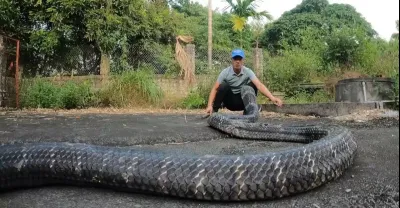 人民緊急呼叫檢測到巨型眼鏡王蛇襲擊險些喪生