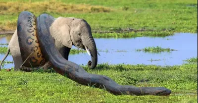 當致命的蛇遇到大象時,會發生這樣的事情