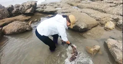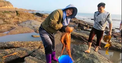狂風巨浪打上岸一堆「寶貝」,皮皮抓了條又大又肥的,吃了大補