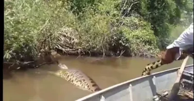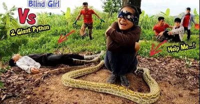 勇敢的女孩被兩條尖叫著求救的巨蟒襲擊