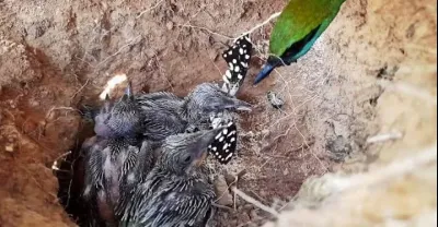 亞洲食蜂鳥在巢中餵養幼鳥