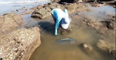 潮坑跳出一頭「猛獸」,皮皮伸手就被咬一口,今天必須給它燉了