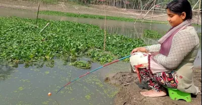 Beautiful Girl Fishing~Fishing With Hook~Traditional Girl Fishing By Village River(Nurani Fishing Bd