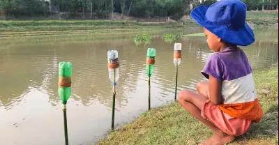 2022 年最佳釣魚視頻 |傳統男孩在河邊用塑料瓶魚鉤抓大魚