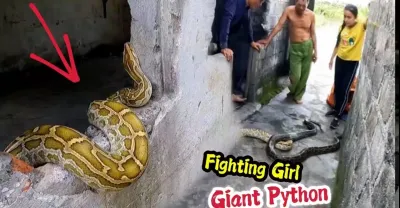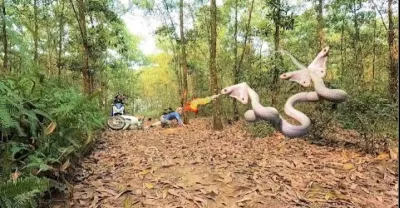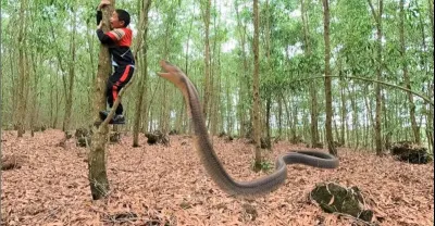 嚇壞了。牛郎男孩在森林裡玩耍時被一條巨蟒襲擊。 - 蟒蛇攻擊