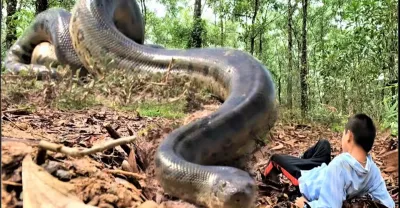 聽到來自地面的奇怪聲音 4 董裡男孩在發現巨蛇時感到害怕