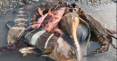 大幹潮海邊滿地都是貨,多得堆成「小山」,這場面可遇不可求