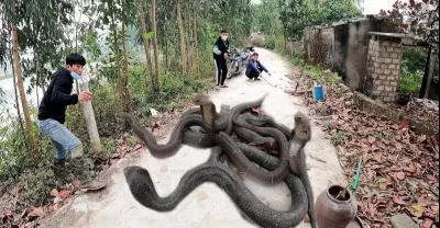 幫助在路中間被4條眼鏡王蛇襲擊的兩兄弟|巨型眼鏡王蛇