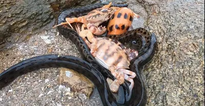 女孩看到5條巨蛇爬過馬路就跑了