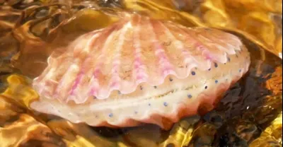 沙灘上密集的鼓包里都有貨,小章還抓到漂亮小魚,鮮活扇貝打開就吃