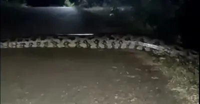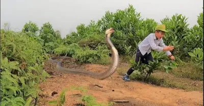 While driving on the road, suddenly a giant snake threatened to run away |cobra hunter